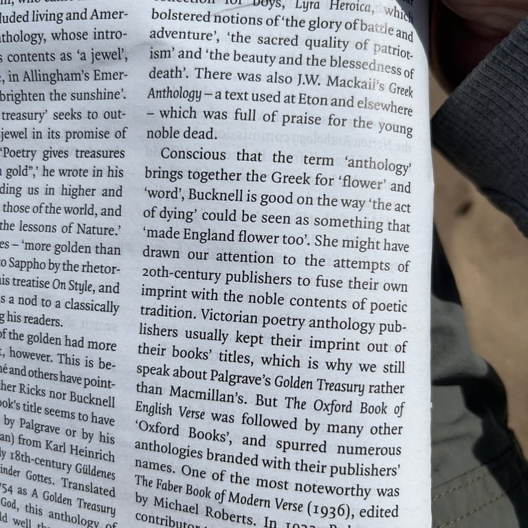 Conscious that the term 'anthology brings together the Greek for 'flower' and 'word', Bucknell is good on the way the act of dying' could be seen as something that 'made England flower too'. She might have drawn our attention to the attempts of 20th-century publishers to fuse their own imprint with the noble contents of poetic tradition.
