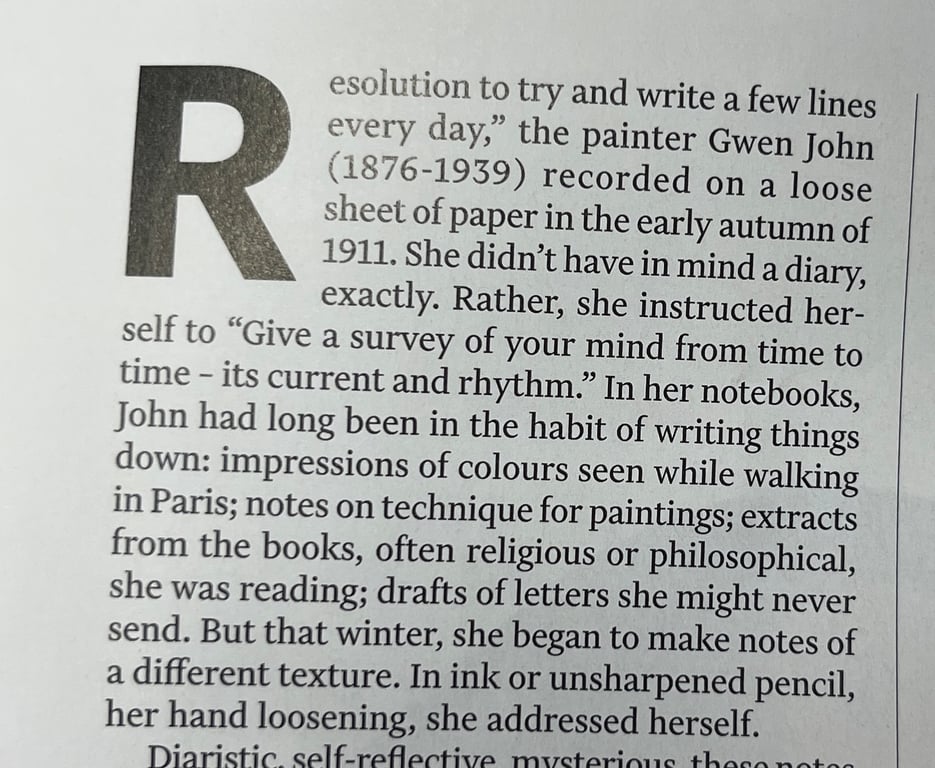 Resolution to try and write a few lines every day," the painter Gwen John (1876-1939) recorded on a loose sheet of paper in the early autumn of